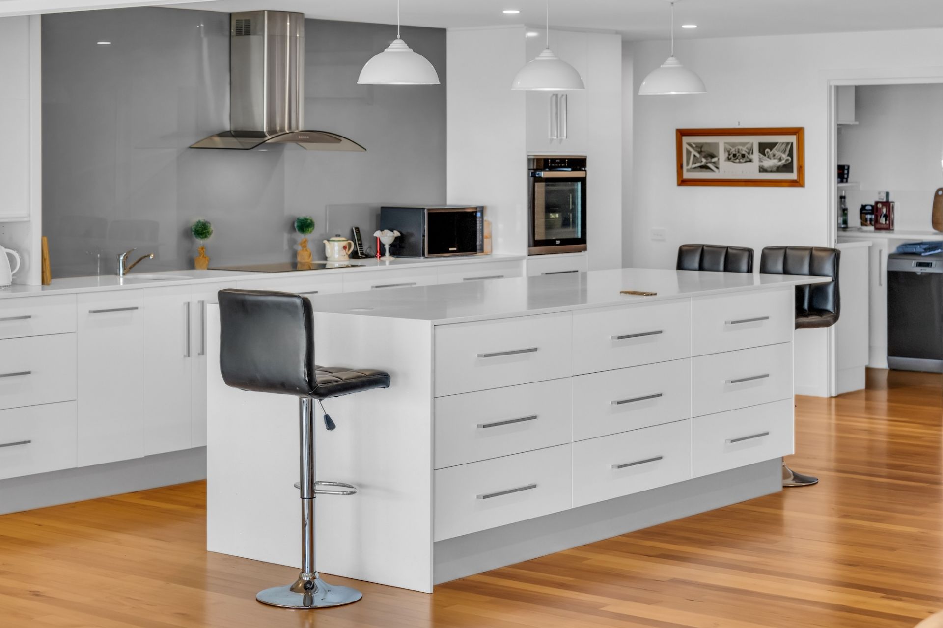 The heart of the home? Our well-equipped kitchen, crafted for both the gourmet chef and everyday cook. You’ll love the sleek stone island bench, the handy butler’s pantry with a second sink, top-notch dishwasher, and stainless steel appliances. Plus, a separate food larder ensures everything you need is right at your fingertips.