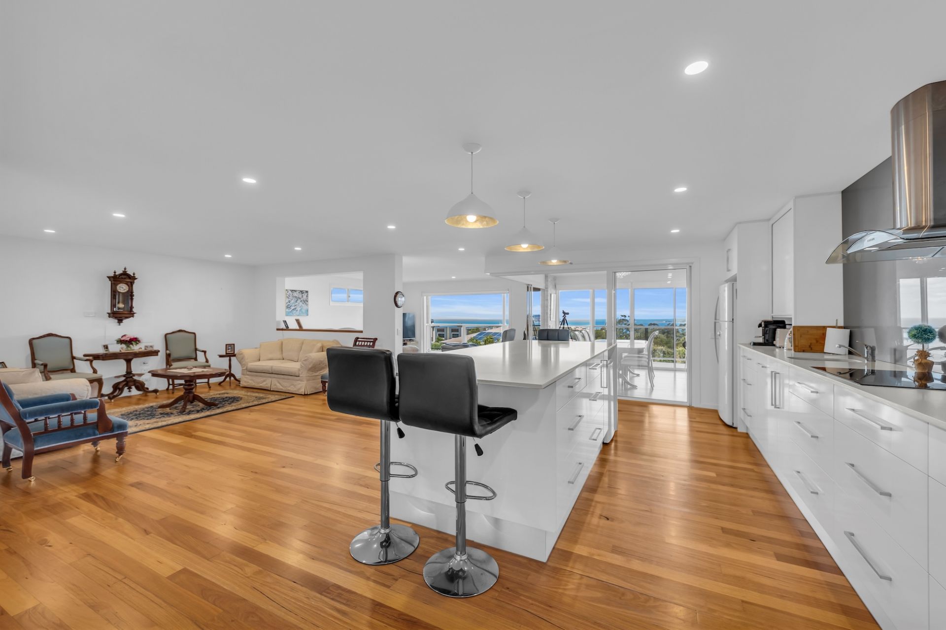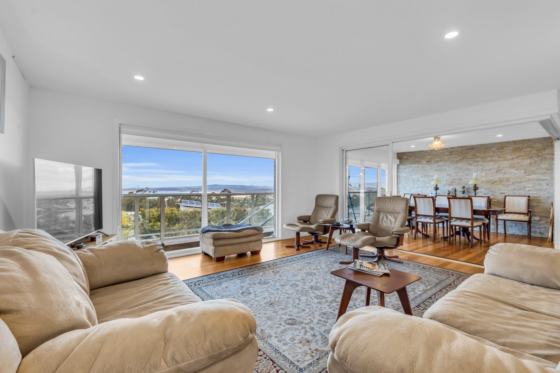 Our two vast living areas offer the perfect spots to entertain guests or simply unwind, all while enjoying panoramic views of the ocean, Merimbula’s twinkling lights at night, and the picturesque mountains. These spaces are just waiting for you to create lifelong memories with your loved ones.